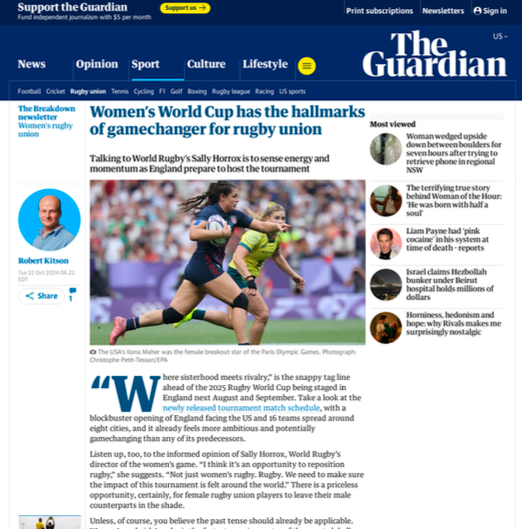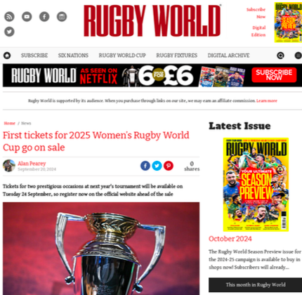 As well as being great fun and a very enjoyable client, we’re really proud to have played a small role in the journey to the Women’s Rugby World Cup 2025, with a host of national, regional and global media coverage. The Guardian, SI, BBC News, BBC World Service and much more.