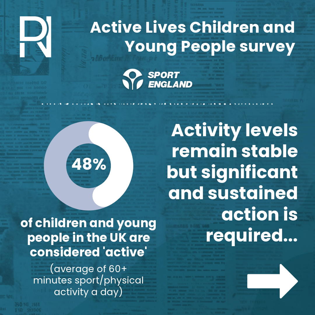 Yet again, concerning data has highlighted the sustained battle to get young people active. 52% of children and young people are doing less than the recommended amount of activity a day. Boys are still more active than girls with affluence and race a key factor.